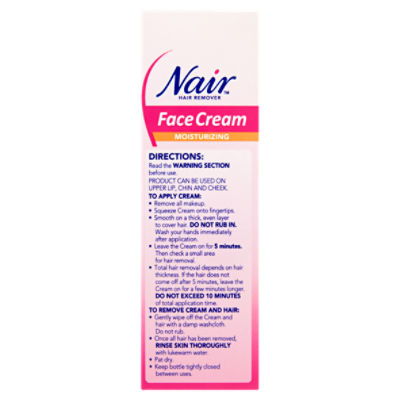Nair is a popular hair removal cream that is safe for most people to use. Squeeze cream into palm. Up to 4 cash back Shop Hair Remover Moisturizing Face Cream and read reviews at Walgreens.